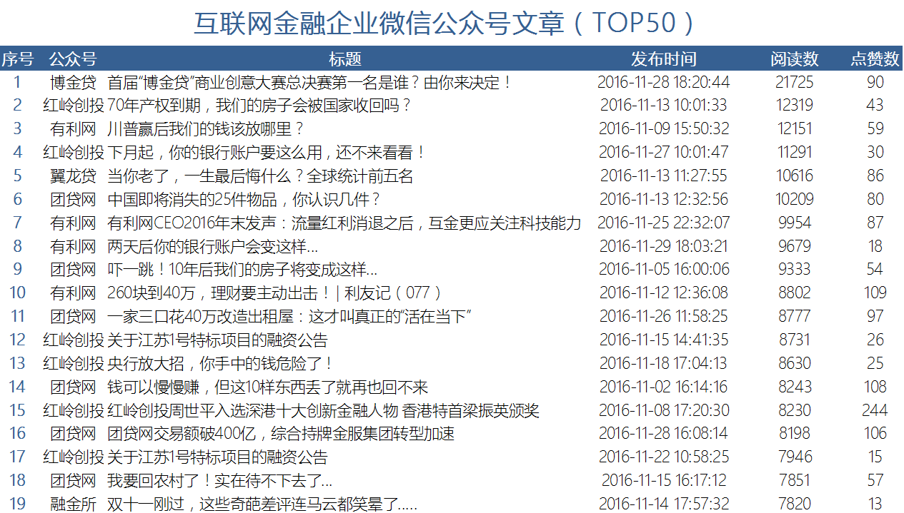 admin 2016/12/07 影响力 排行榜 互联网金融