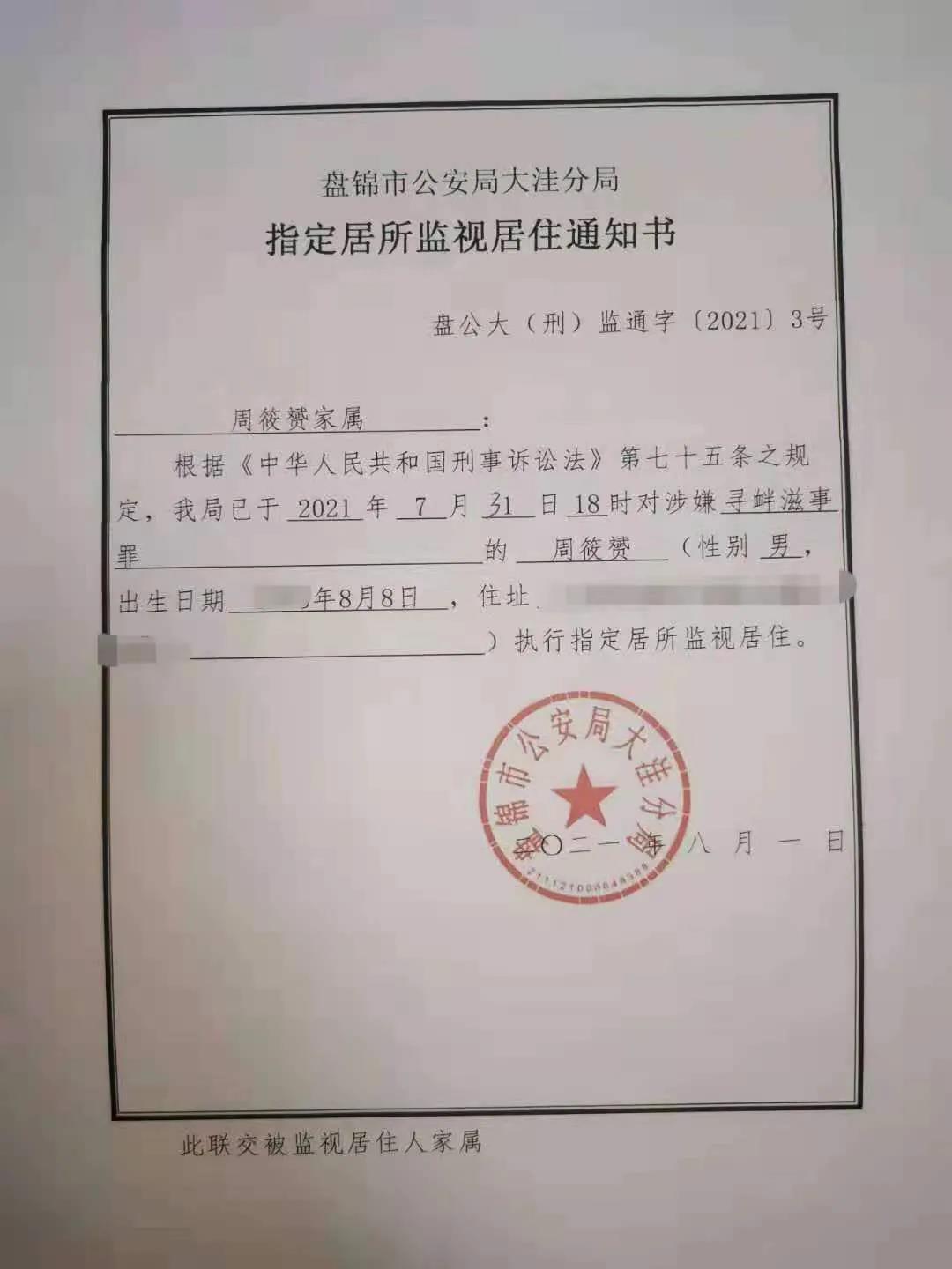 7月31日,律师周筱赟被辽宁省盘锦市大洼公安分局以涉嫌寻衅滋事跨省抓捕。9月30日,当地检察院认为周筱赟等不构成寻衅滋事罪,不批准逮捕,周筱赟等随即被释放。