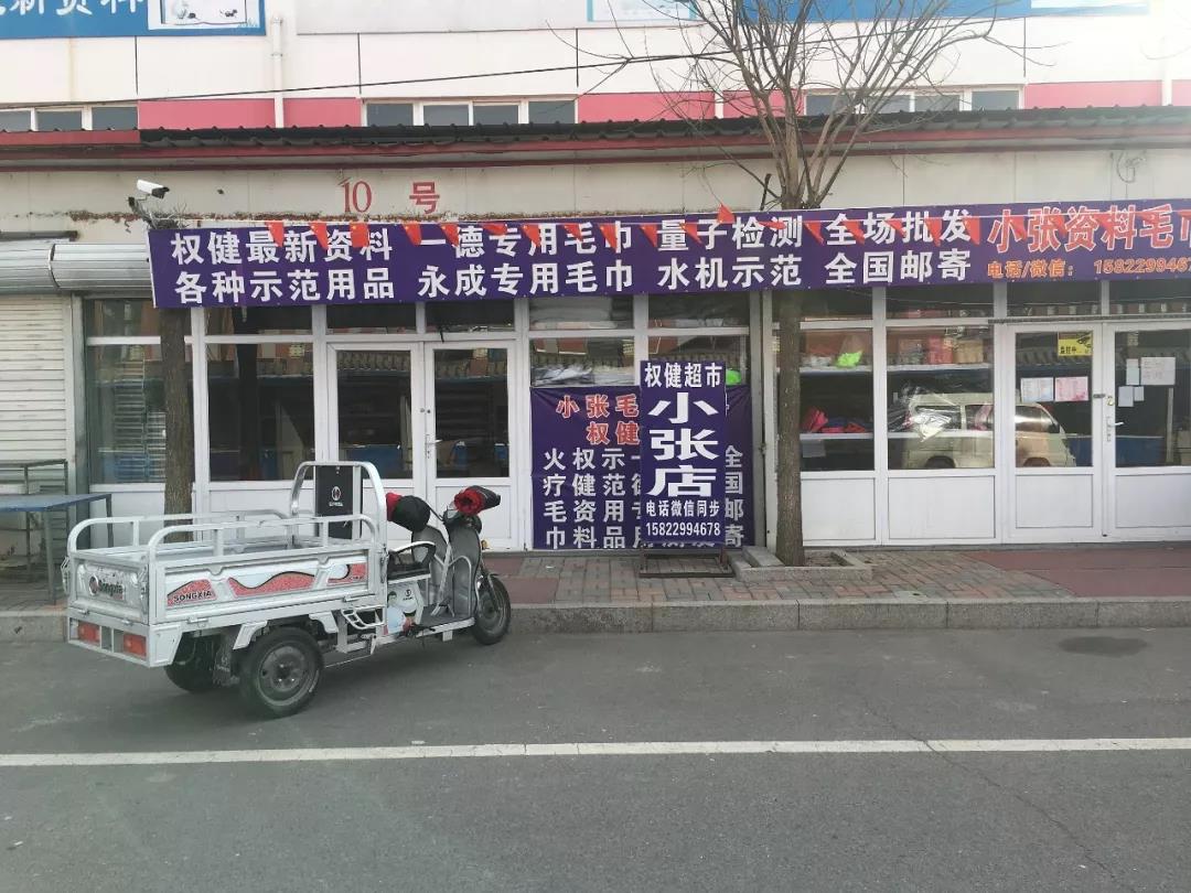 天津市武清区权健总部附近森淼道上的小店,店内售卖权健火疗毛巾和其他权健产品。| 图:视觉中国