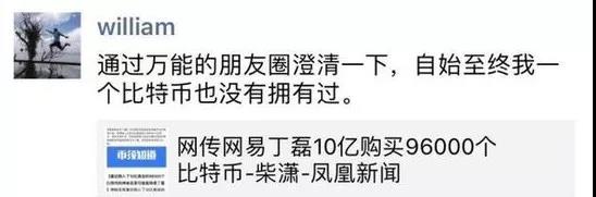 闻听此言的丁磊大呼冤枉,并第一时间在网上澄清,说自己从来没买过任何一枚比特币,和比特币相比,他更关注区块链的发展。此前丁磊曾表示不要把区块链技术想成比特币,比特币只是区块链应用的一种场景。